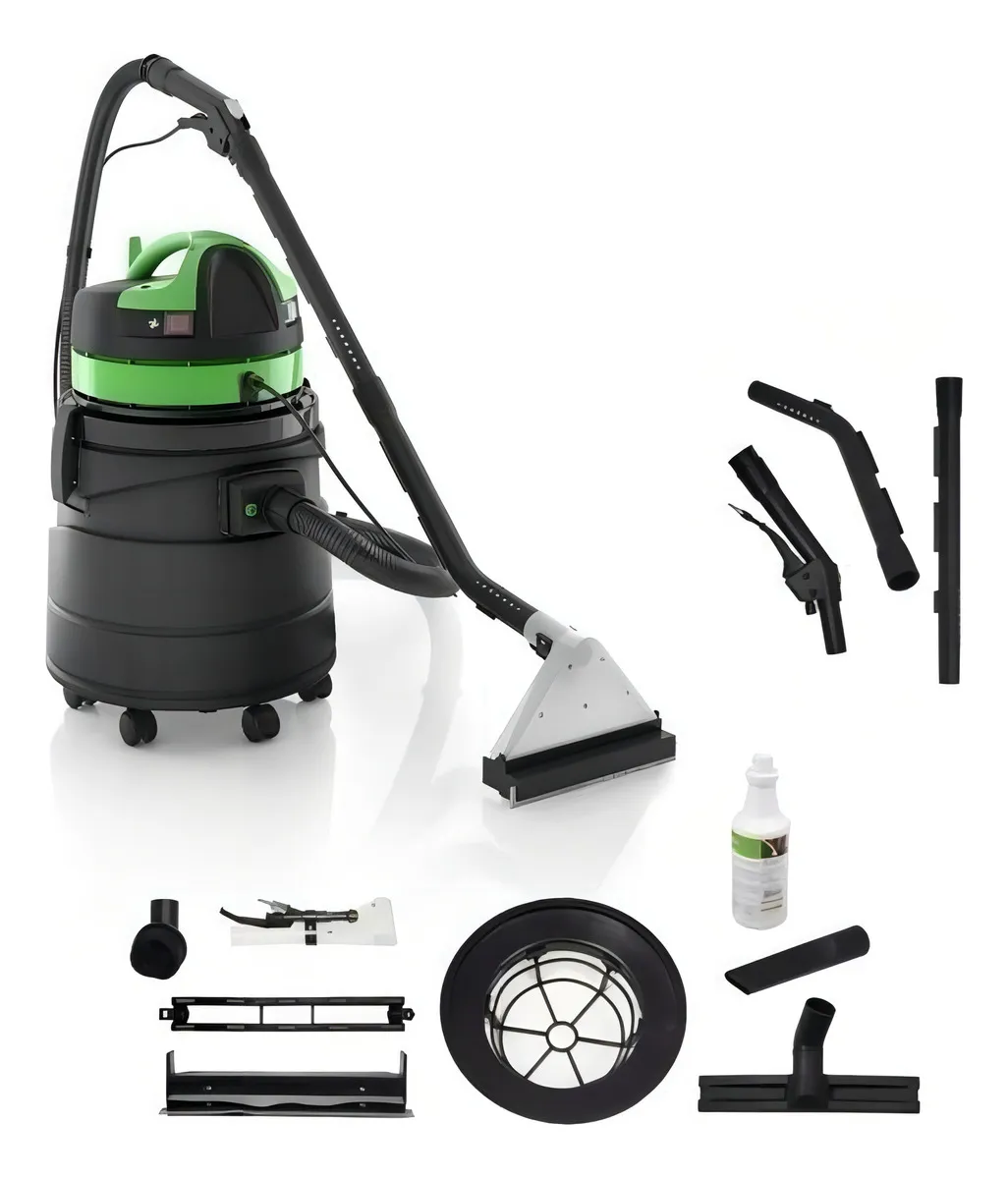 Especificações – Extratora e aspirador profissional ideal para prestação de serviços – Possui bomba para injeção d’água – Pressostato embutido: desliga a bomba automaticamente ao soltar o gatilho – Motor Ametek de alto desempenho – Indicado para limpeza em domicílio de carpetes e estofados – Engate rápido em aço inox – Kit de acessórios profissional e completo – Filtro em poliéster com tratamento antibacteriano – Mangueira ultra flexível – Balde de solução de 11 L