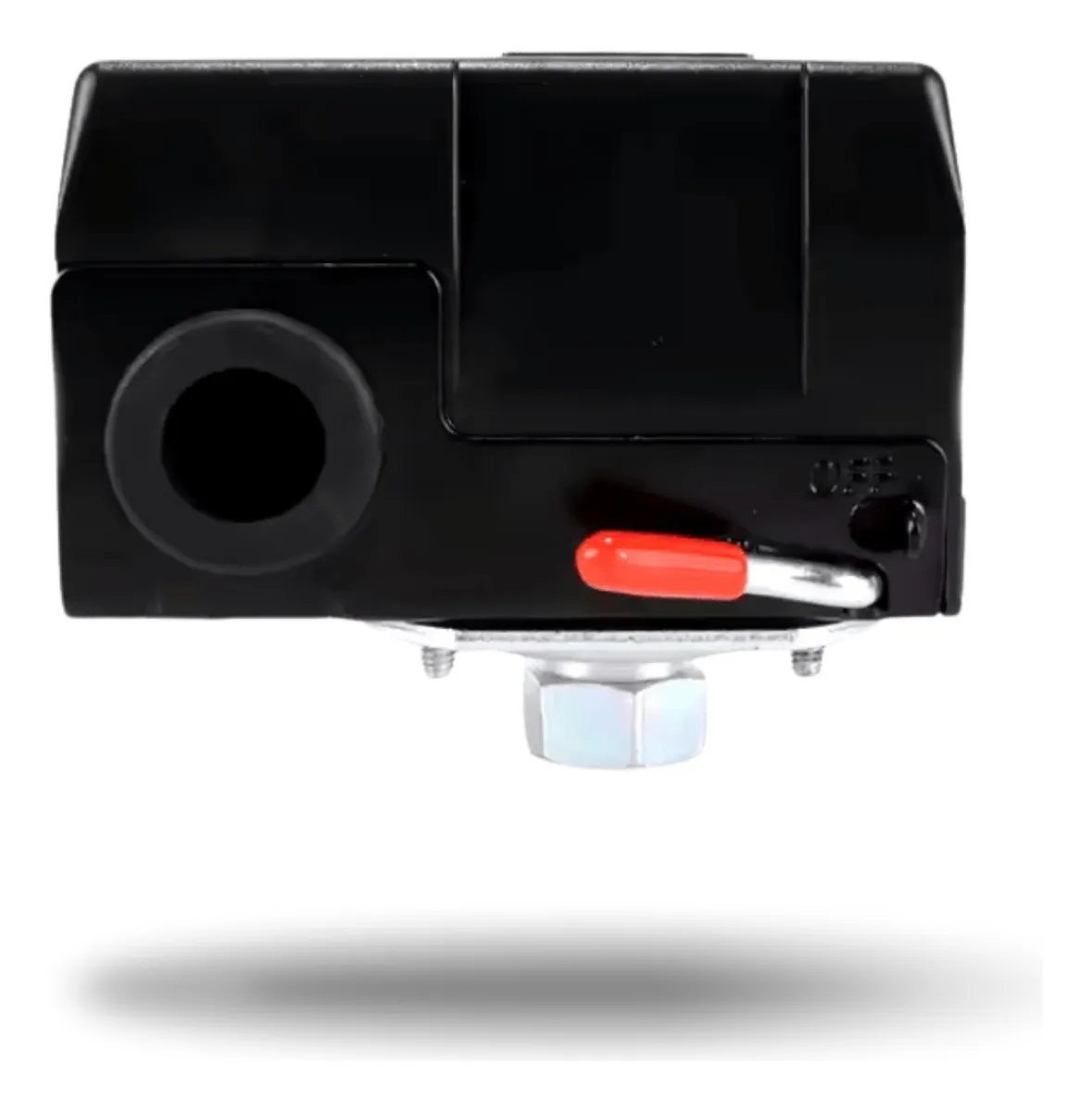 Especificações técnicas: – Liga: 80 Psi. – Desliga: 120 Psi. – Faixa de Ajuste: Baixa pressão. – Ajuste de fábrica: 80-120 PSI (alteração do ajuste pode ocasionar perda da garantia). – Rosca: Fêmea 1/4 NPT. – Vias (saídas): 01 porta para conexão com o reservatório. – Fluído Compatível: Ar. – Tipo: Com alavanca lateral (On/Off). – Válvula de alívio Automática: Sim, 1/4 (6,4 mm). – Principal Aplicação: Compressor de ar (pistão). – Não é recomendado o uso em aplicações mobil (autos) por conta das propriedades elétricas tanto da aplicação quanto dos veículos. Capacidade Elétrica: – Monofásico: 127V – 5 cv. – Monofásico: 240V – 3 cv. – Trifásico: 240V – 5 cv. (Acima de 03 cv é recomendado o uso de chave magnética). – Corrente máxima:120VAC 20A/ 240VAC 12A. – Contato: NC.
