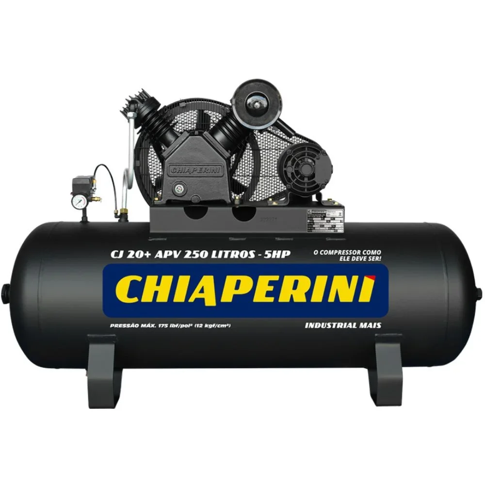 Compressor de Ar 20 Pés 250L 5HP 175 PSI 220/380V Trifásico Chiaperini é o equipamento profissional indicado por especialistas para quem busca potência, eficiência e durabilidade em trabalhos que exigem alto desempenho. Ideal para uso industrial e profissional, este compressor de ar Chiaperini é amplamente utilizado em postos de serviço, borracharias, oficinas mecânicas, serralherias, marcenarias, usinagens e construção civil.