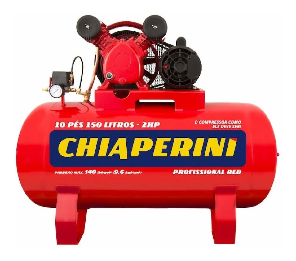 Compressor de média pressão (140lbf/pol²) com sistema de operação em V, em que irá garantir maior vida útil e proporcionar melhor desempenho no trabalho, sendo em diversas aplicações de baixa e média exigência como, em postos de serviços, fazendas, borracharias, serralherias, construção civil.
