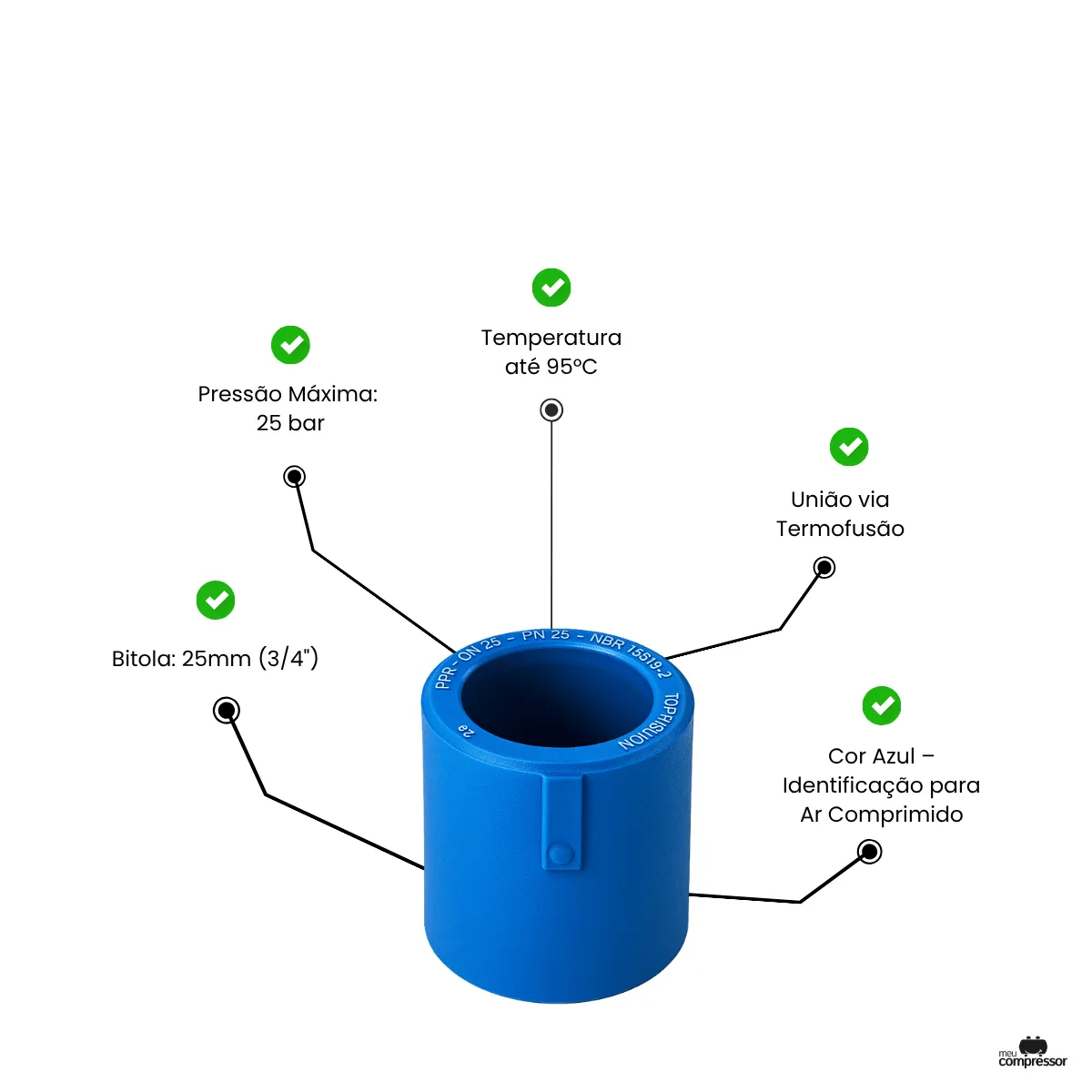 Luva Ppr Para Rede De Ar Comprimido 25 Mm – Topfusion