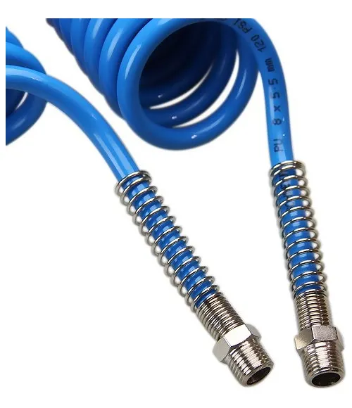 As mangueiras espirais são utilizadas para condução de ar para ferramentas pneumáticas, acessórios, linhas de ar comprimido ou refrigeração, limpeza de cabines, máquinas e etc. Possui seu Material em PU, altamente flexível e maleável e de alta resistência, ela não racha ou quebra como outrostipos de materiais como o de nylon.
