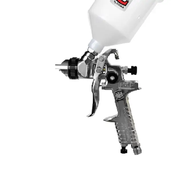 • Sistema de ajuste de fluxo de ar e spray separados que permite ajustes finos e precisos;• Bico de 1,3mm;• Agulha e bico em aço Inox;• Caneco plástico de 600ml.