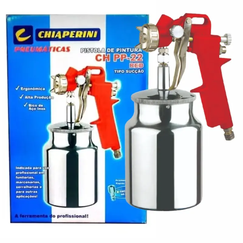 Pistola de Pintura tipo sucção e de alta produção para uso profissional e industrial como em funilaria, serralheria e marcenaria dando um fino acabamento em pinturas esmaltadas, vernizes e muito mais!
