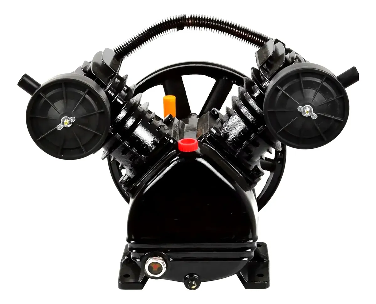 Completo com todas peças internas, volante e filtros de ar. Compatível em qualquer compressor de 6 à 10 pés para substituir cabeçotes danificados. Na maioria dos casos reparar um cabeçote danificado se torna mais caro, mais trabalhoso e menos garantido! Evite paradas desnecessárias de seus trabalhos por conta de cabeçotes condenados com baixa pressão ou que já tem a vida útil no fim. Adquirindo o cabeçote novo sua produção certamente estará atendida e consequentemente o mesmo se pagará rapidamente, investimento com retorno garantido. CARACTERISTICAS: Um estágio Dois pistões em v Visor de nível de óleo Pintura de alta resistência Dois filtros de entrada de ar Cabeçote inteiro em ferro fundido Componentes de alta durabilidade ESPECIFICAÇÕES: Canal do volante: A Pressão máxima: 140psi Diâmetro dos pistões: 65mm Deslocamento teórico com motor de 3450 RPM, alta rotação: 6,2 pés: 178 litros a 966 RPM polia 7cm 1,0cv 7,6 pés: 212 litros a 1120 RPM polia 8cm 1,5cv 8,2 pés: 232 litros a 1260 RPM polia 9cm 1,5cv 10 pés: 283 litros a 1395 RPM polia 10cm 2,0cv 15 pés: 424 litors a 1614 RPM polia 12cm 3,0cv *Caso seja motor de 1725 RPM baixa rotação dobrar o tamanho da polia DIMENSÕES: Altura: 34cm Largura: 35cm Base: 12cm x 20cm Profundidade: 22cm Furação na base (4 furos): 9cm x 17cm