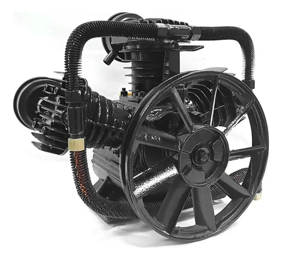 PARTE FÍSICA: Três pistões Serpentina protegida Pintura de alta resistência Visor do óleo transparente Serpentina extra adaptável Três filtros de entrada de ar Cabeçote inteiro em ferro fundido