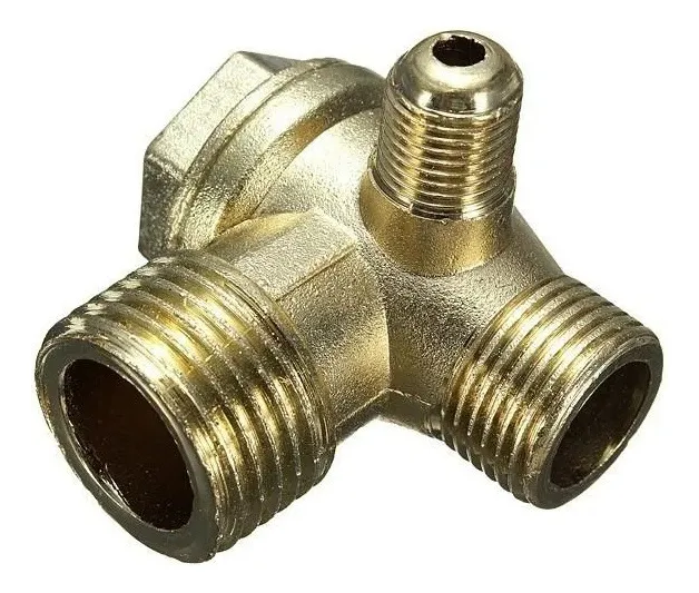 – 1 Válvula de Retenção Compressor MOTOMIL / CHIAPERINI / LINUS / VONDER/ INTEC / MAM / BR MOTORS – ENTRE OUTROS Detalhes Técnicos: – Medidas das roscas – Conexão no tanque 1/2″ – Conexão serpentina do cabeçote 3/8″ – Conexão serpentina pressostato 1/8″ – Com saída para Alívio – Original Compatível: